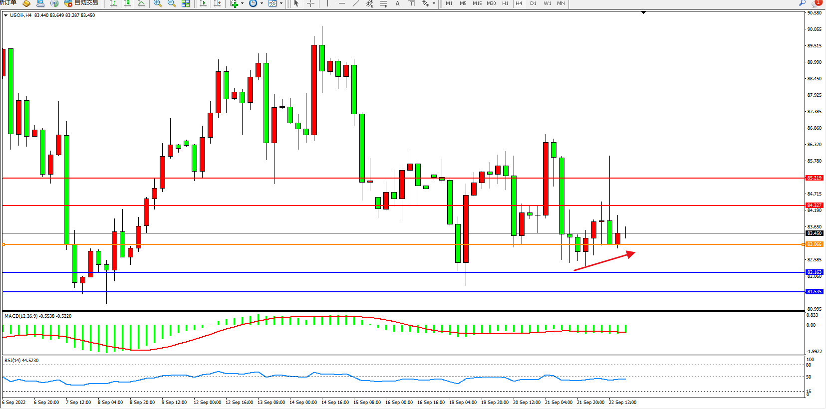 原油USOil——4小时K线图显示: