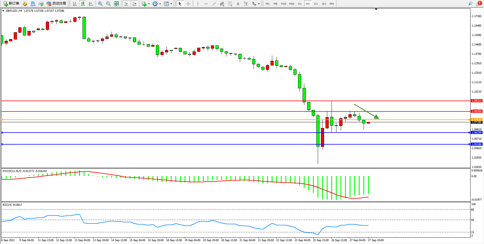 英镑美元GBPUSD ——4小时K线图显示: