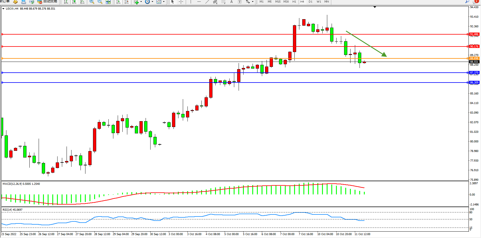 原油USOil——4小时K线图显示: