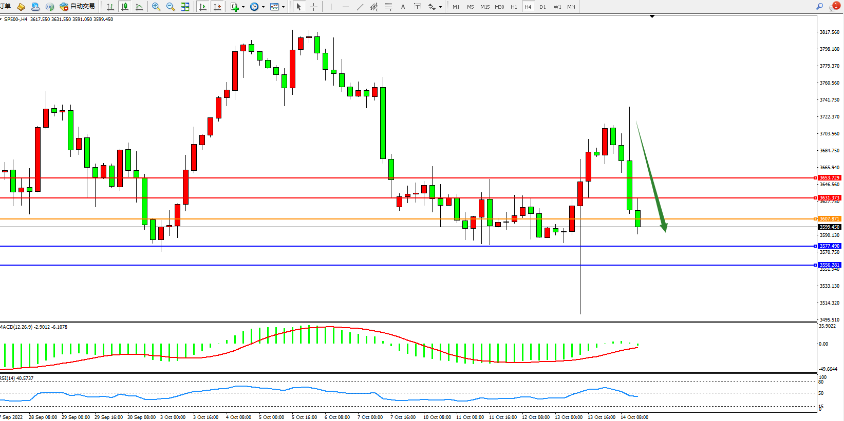 标普SP500——4小时K线图显示: