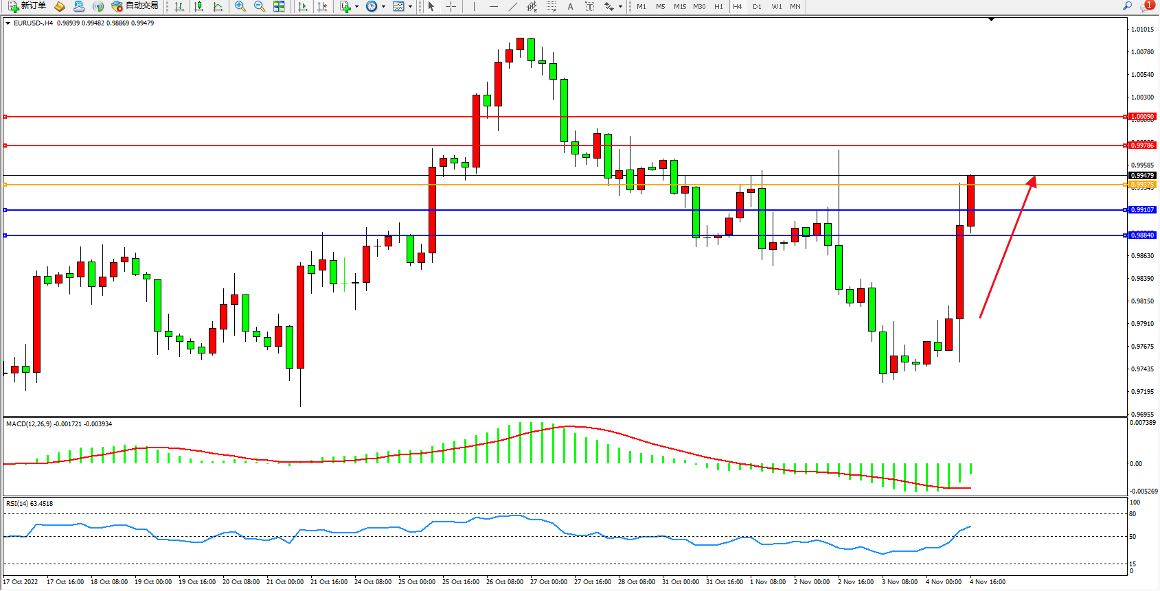 支撑:0.99107、0.98840