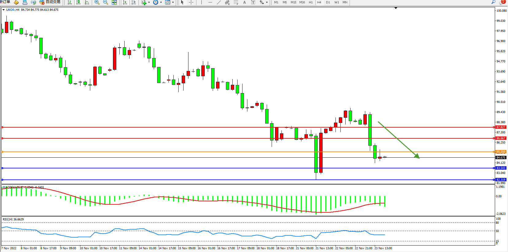 布油维持84.675附近震荡,中国的新冠肺炎疫情和对主要经济体经济放缓的担忧对能源需求构成了挑战。而主要央行的激进加息可能加剧经济放缓担忧,也给油价施加压力。