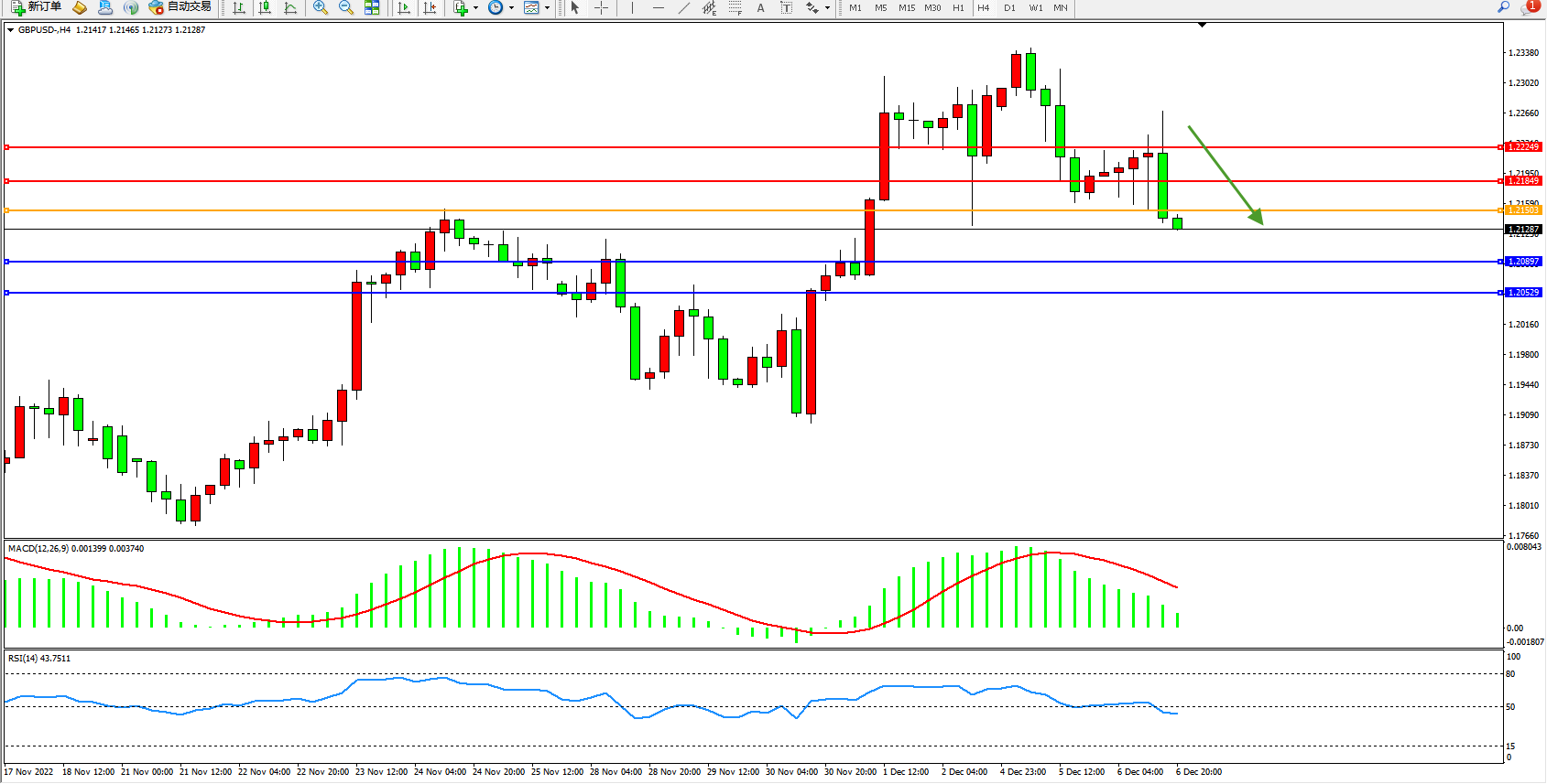 英镑美元GBPUSD ——4小时K线图显示: