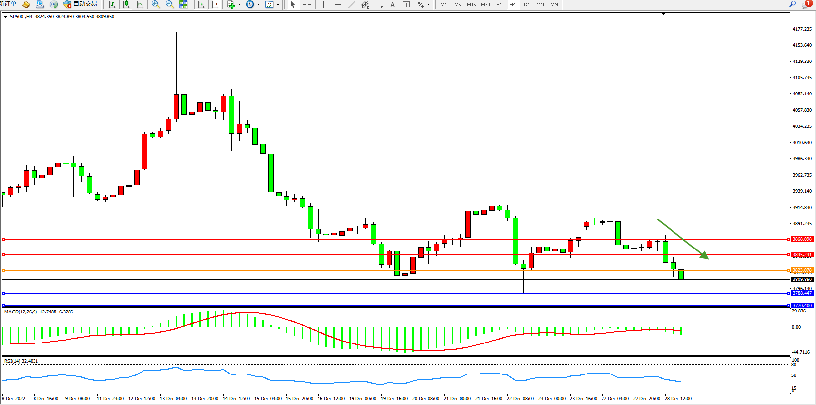 标普SP500——4小时K线图显示:
