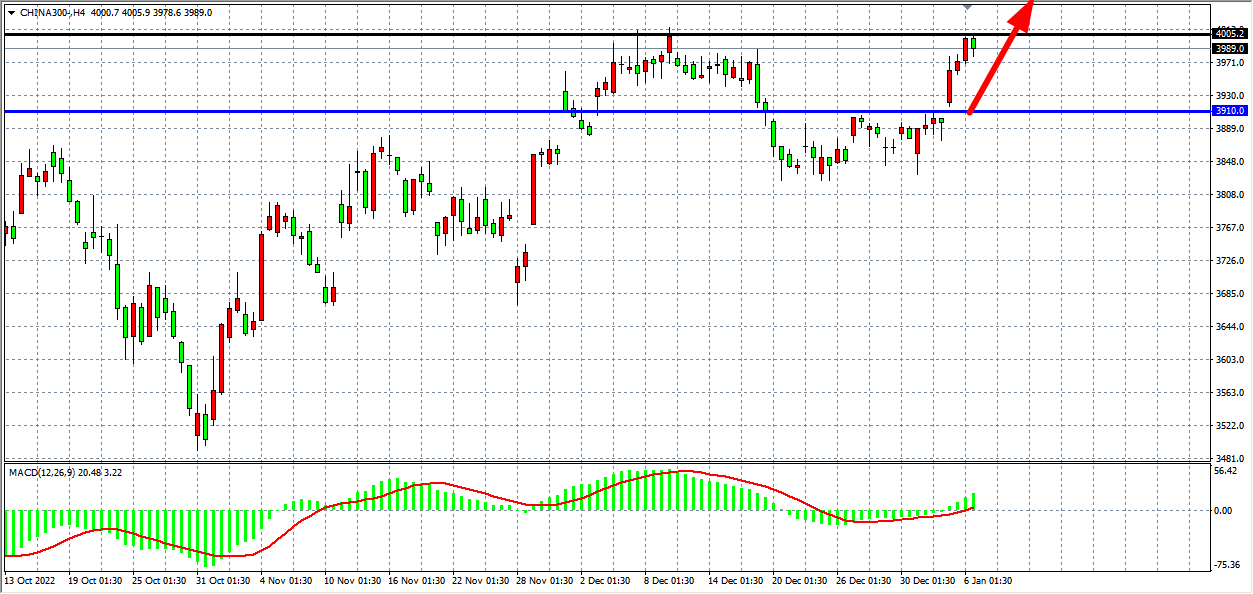 4小时图看,沪深300呈现冲高回落之势,在前高4005一线出现短期受阻,同时MACD量能在零轴之上继续呈现放量状态,当前支撑位于3910附近,若上破4005有望打开新一轮上行空间,后期目标看4050-4100附近。
