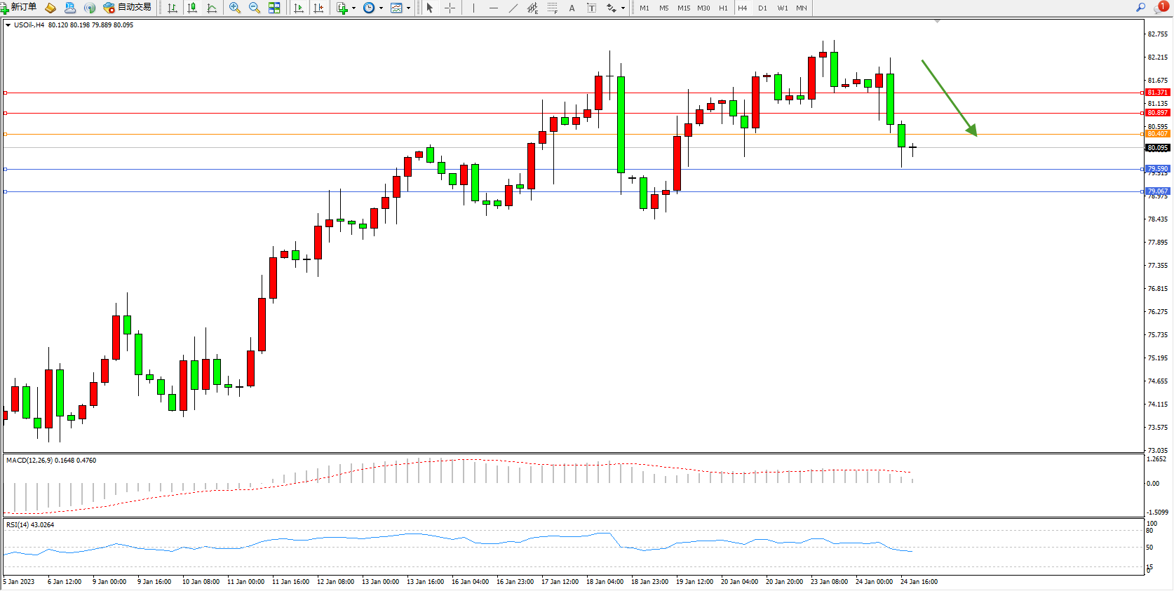 交易策略:80.407下方看跌,目标79.590、79.067
