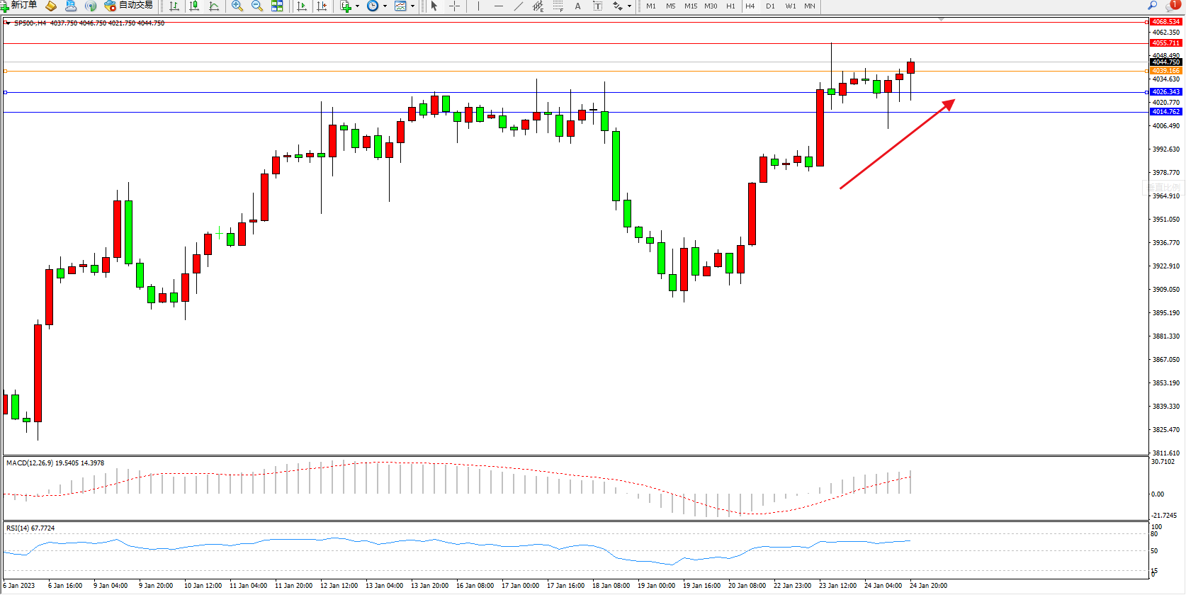 标普500指数1月24日(周二)收盘下跌4.15点,跌幅0.10%,报4015.66点;交易员预计美联储将在年底前降息,而其他央行则会随着政策收紧而变得更加“鹰派”。随着美国通胀显示出企稳迹象,避免美国经济硬着陆成为首要任务,投资者现在正在消化美联储立场的软化。