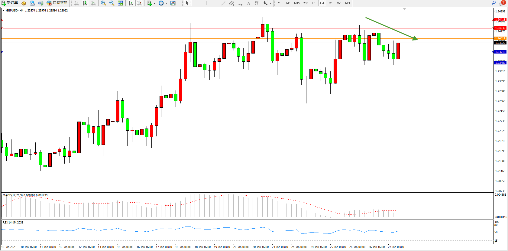 交易策略:1.24011下方看跌,目标1.23719、1.23487