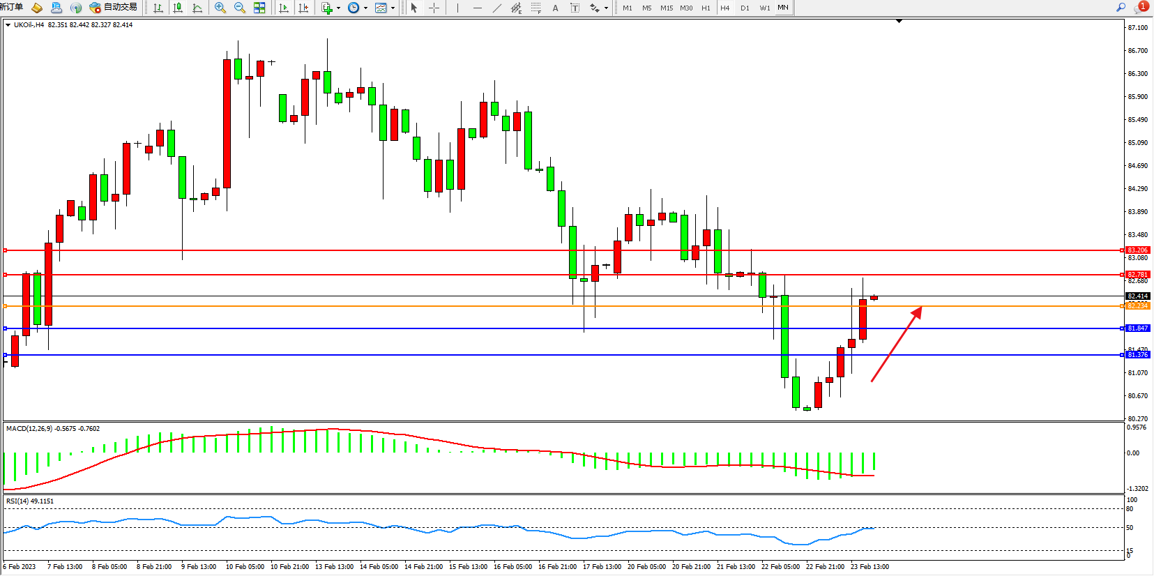 交易策略:82.234上方看涨,目标82.781、83.206