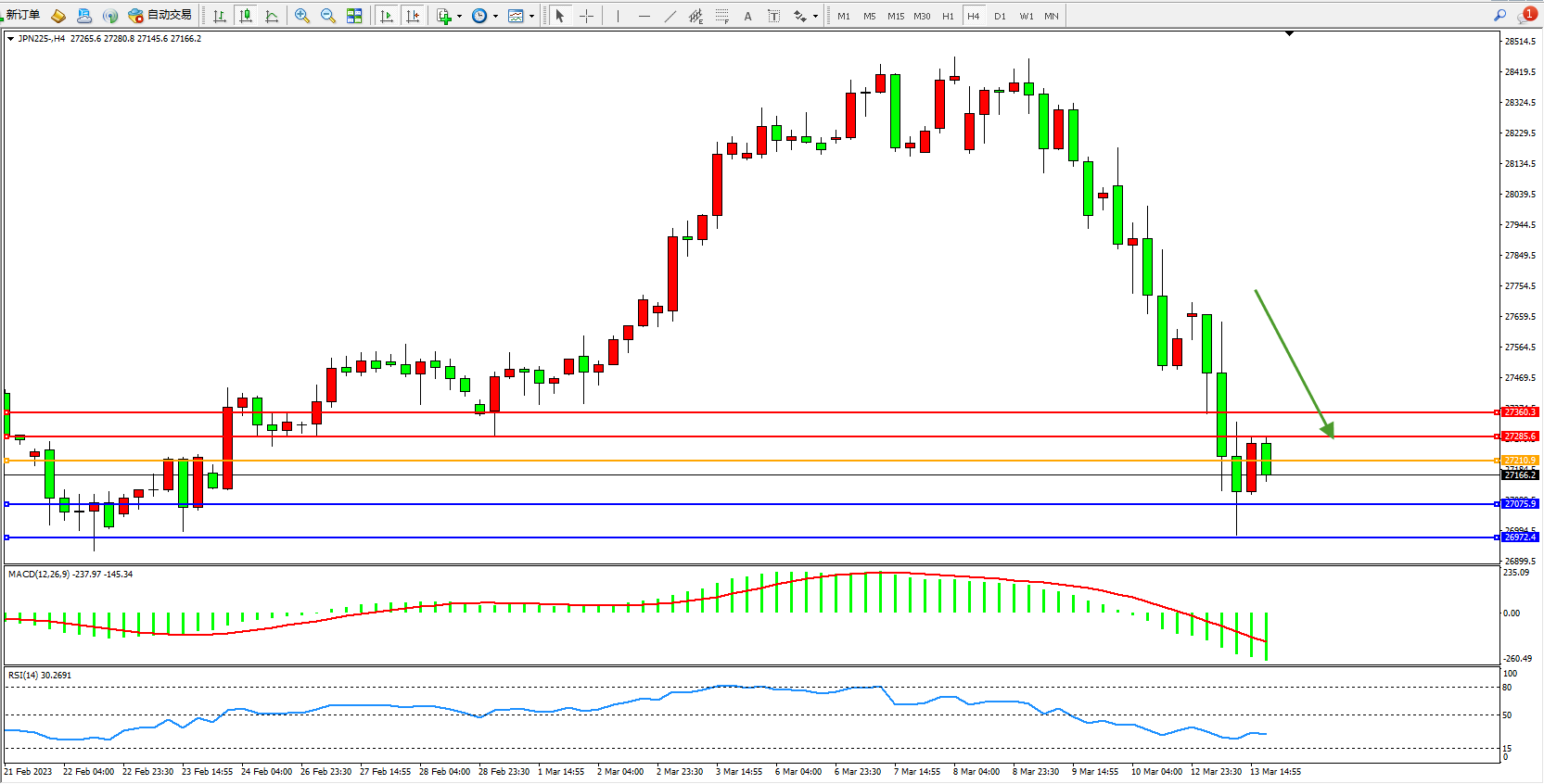 交易策略:27210下方看跌,目标27075 26972