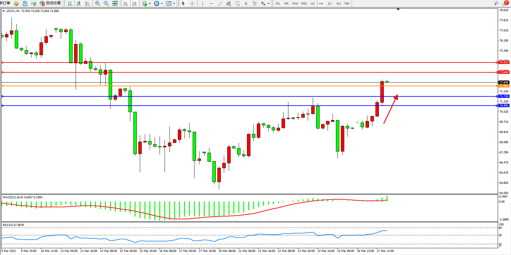 阻力位:73.640 74.424