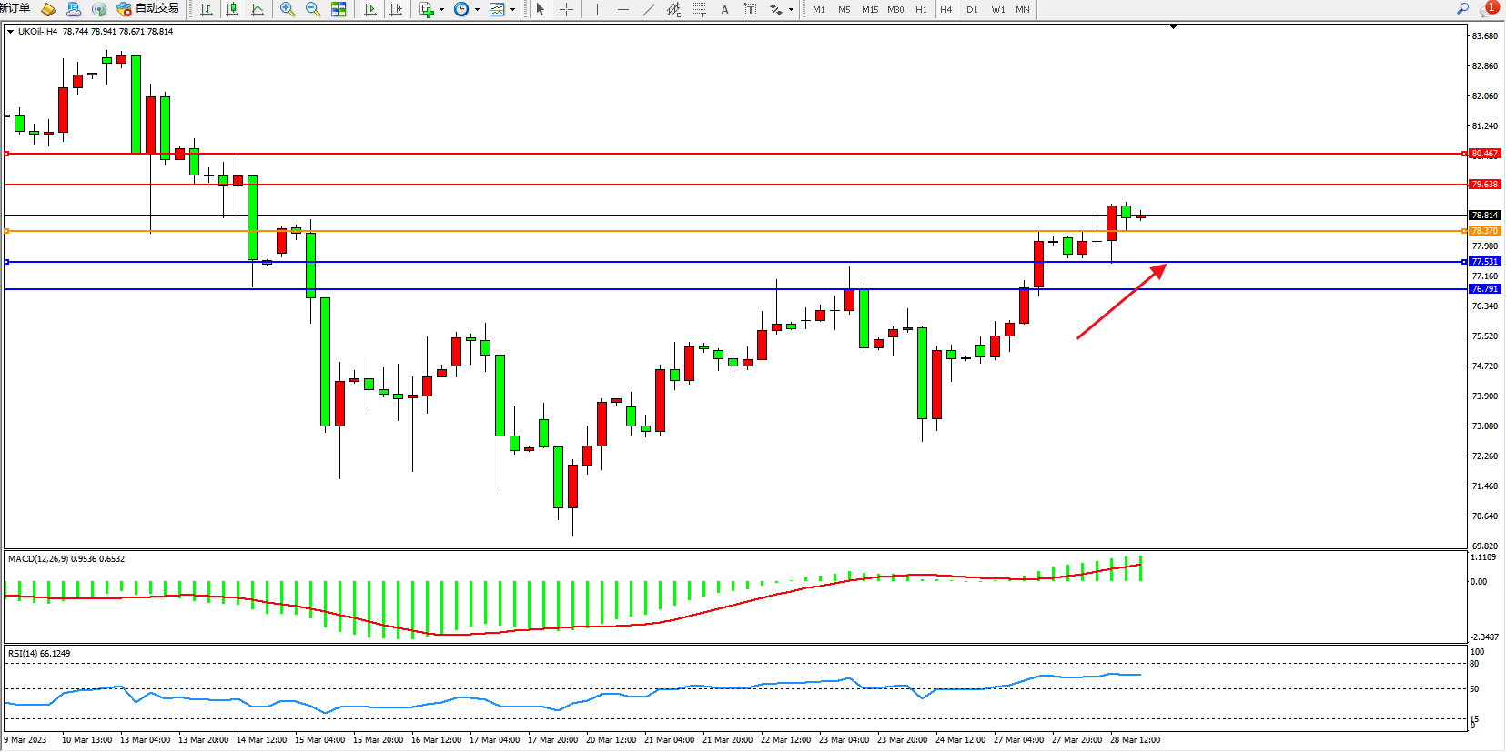 交易策略:78.570上方看涨,目标79.638 80.467