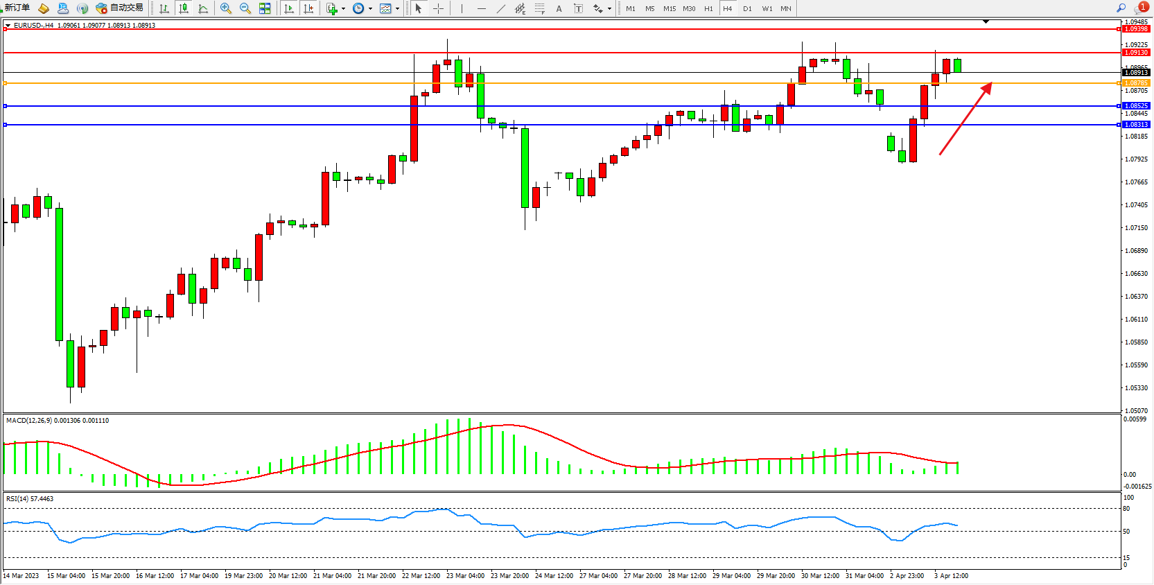 交易策略:1.08785上方看涨,目标1.09130 1.09398