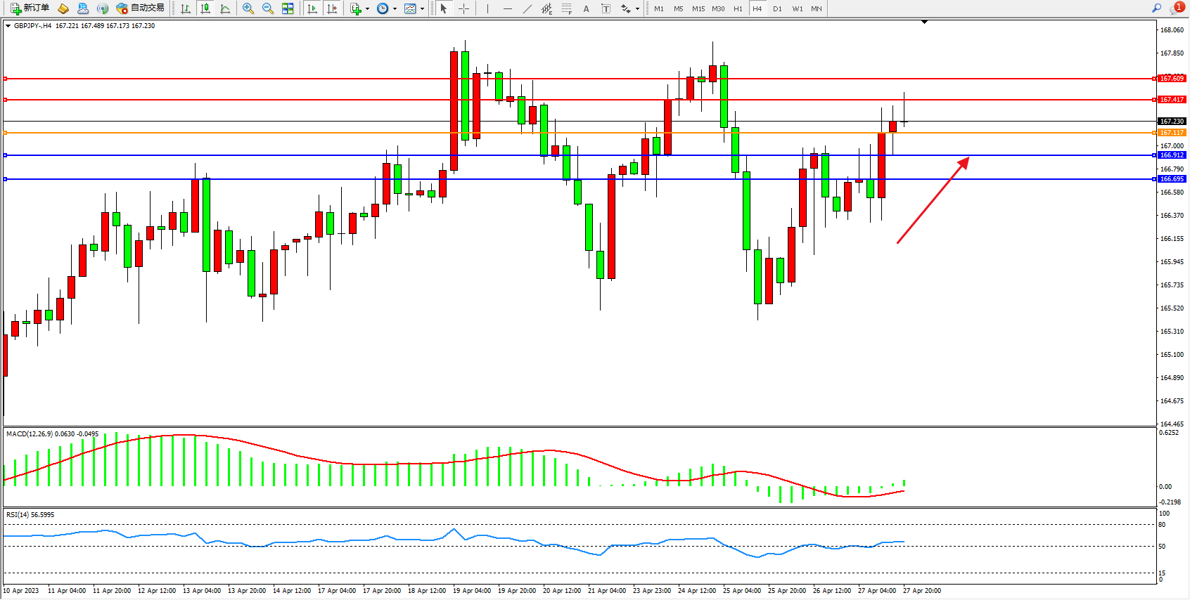 阻力位:167.417 167.609