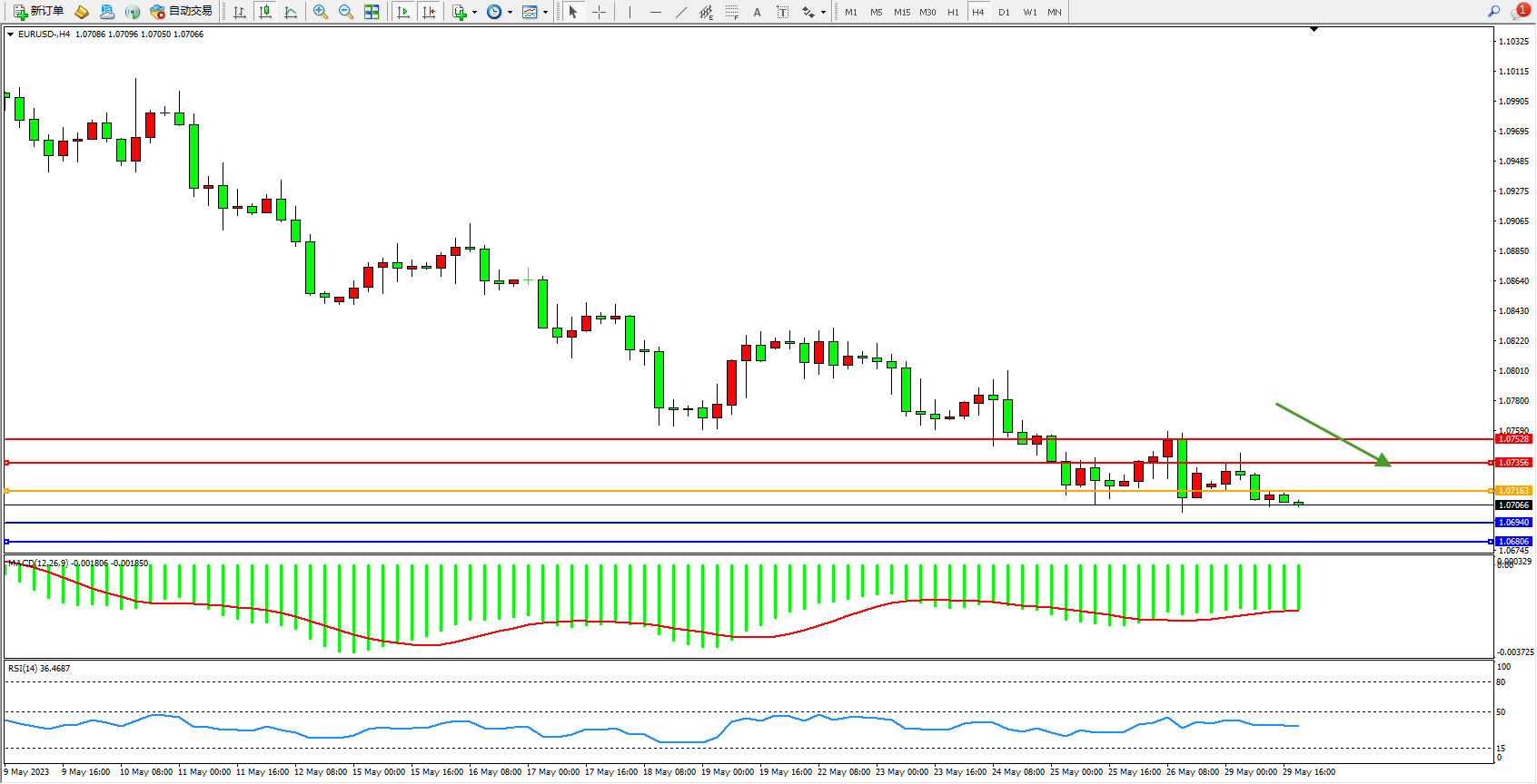 交易策略:1.07163下方看跌,目标1.06940  1.06806