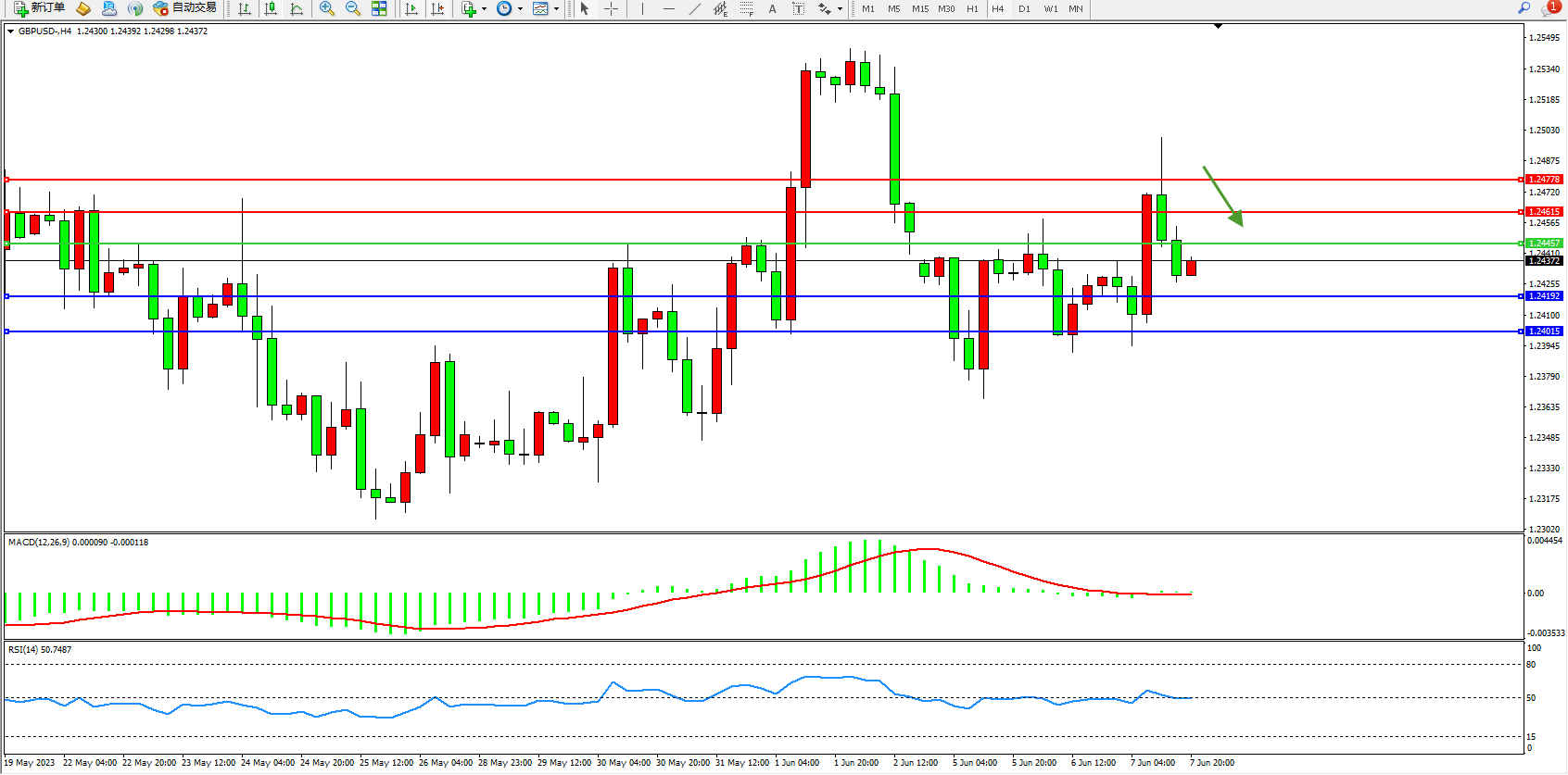 英镑美元GBPUSD ——4小时K线图显示: