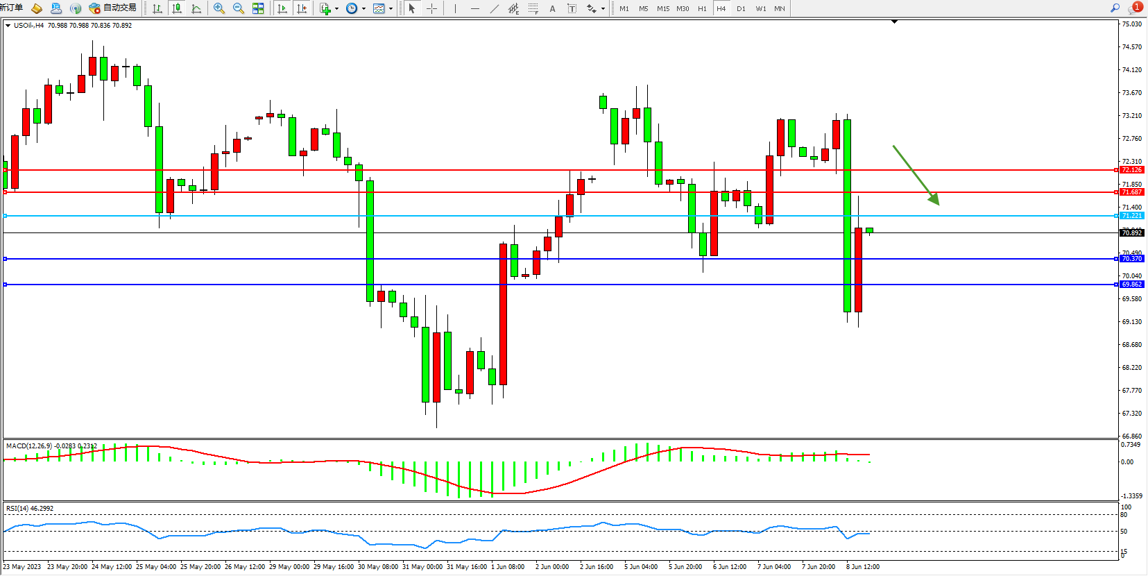 原油USOil——4小时K线图显示: