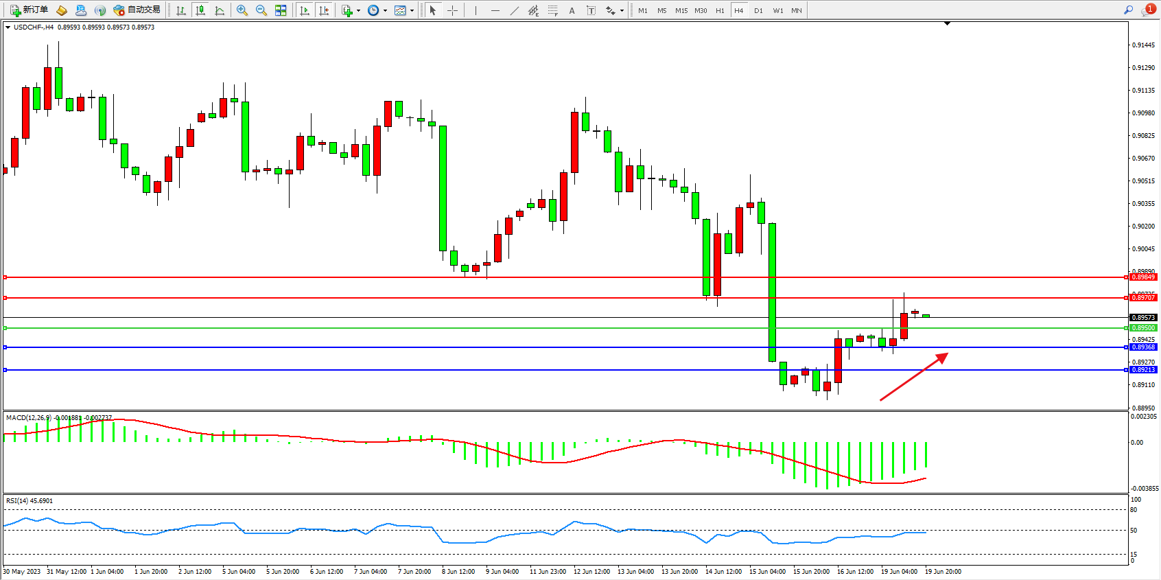 交易策略:0.89500上方看涨,目标0.89707  0.89849