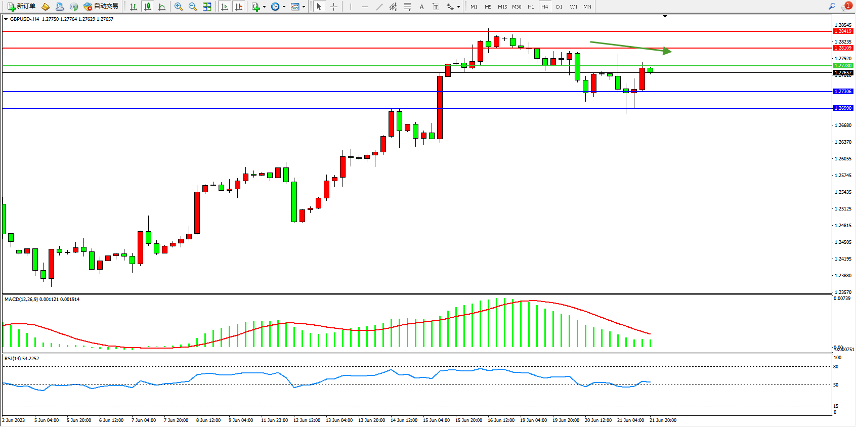 英镑美元GBPUSD ——4小时K线图显示: