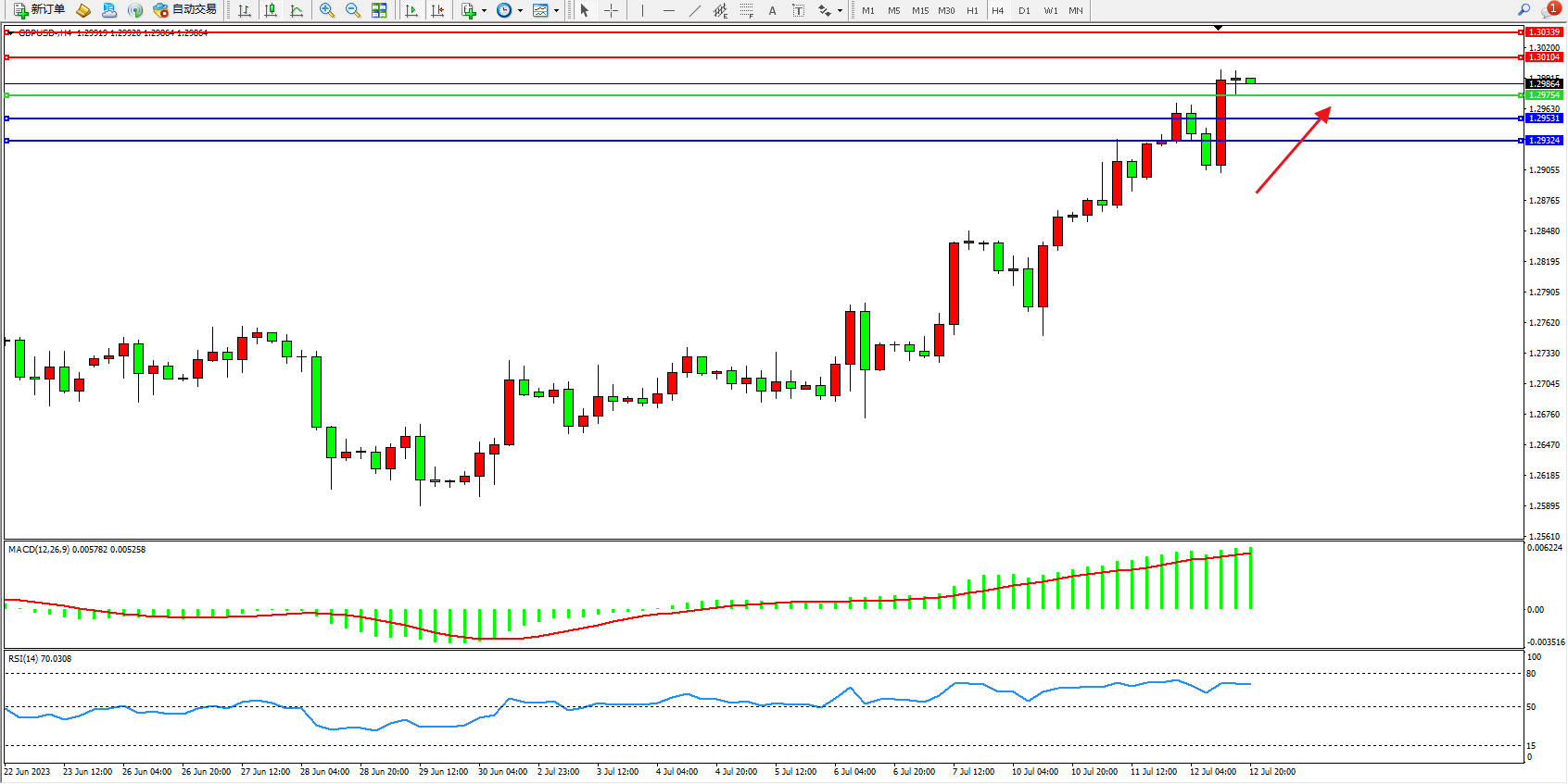 英镑美元GBPUSD ——4小时K线图显示: