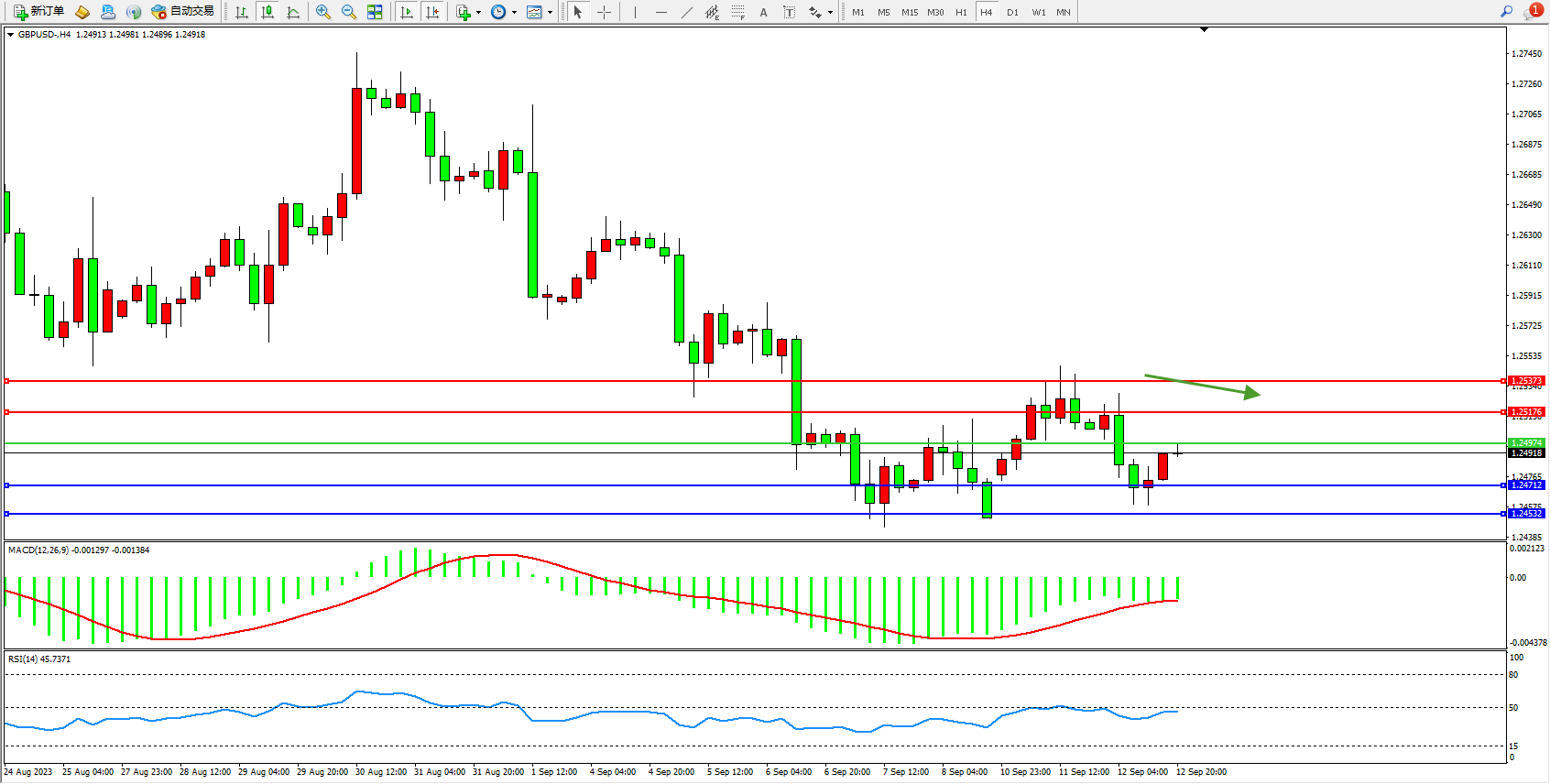 交易策略:1.24974下方看跌,目标1.24712  1.24532