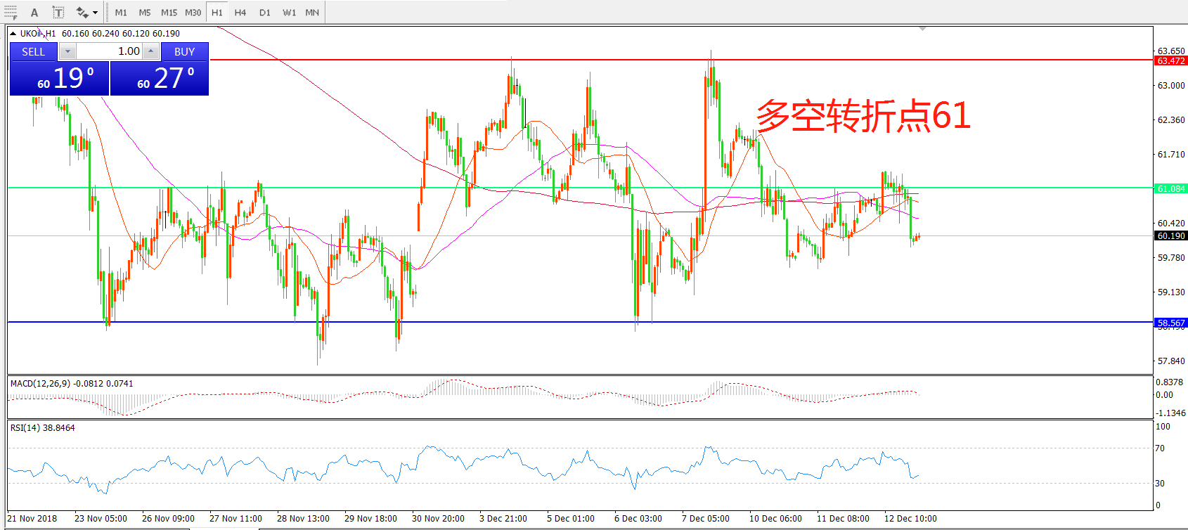 交易策略:在61.00之下看跌,目标58.00 55.00