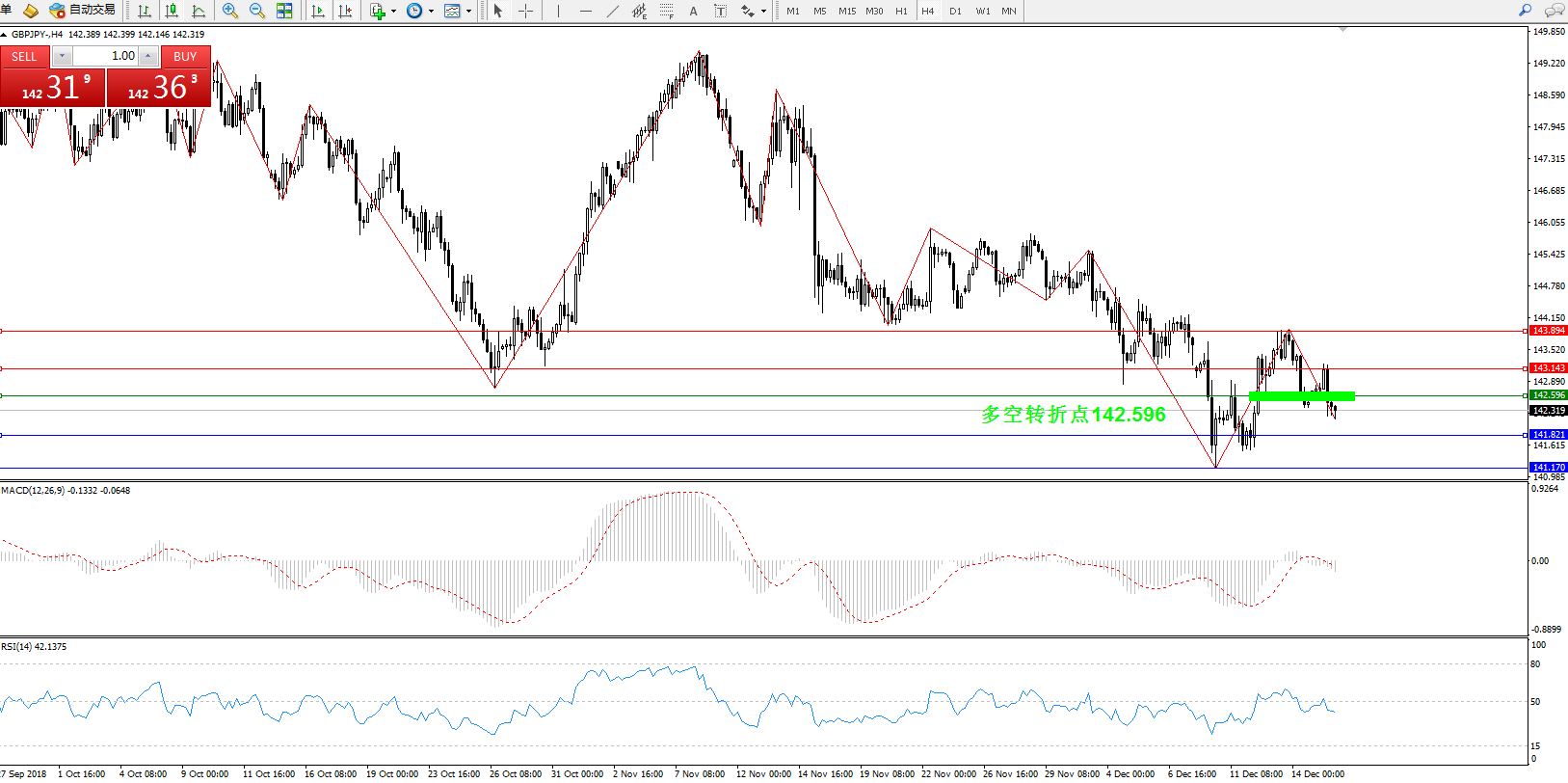 备选策略:142.596下方看跌,目标141.821141.170