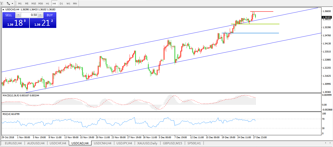 美元兑加元USDCAD 4小时线图: