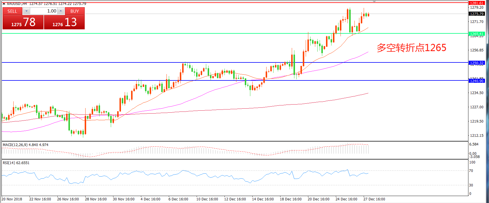 多空转折点:1265.00