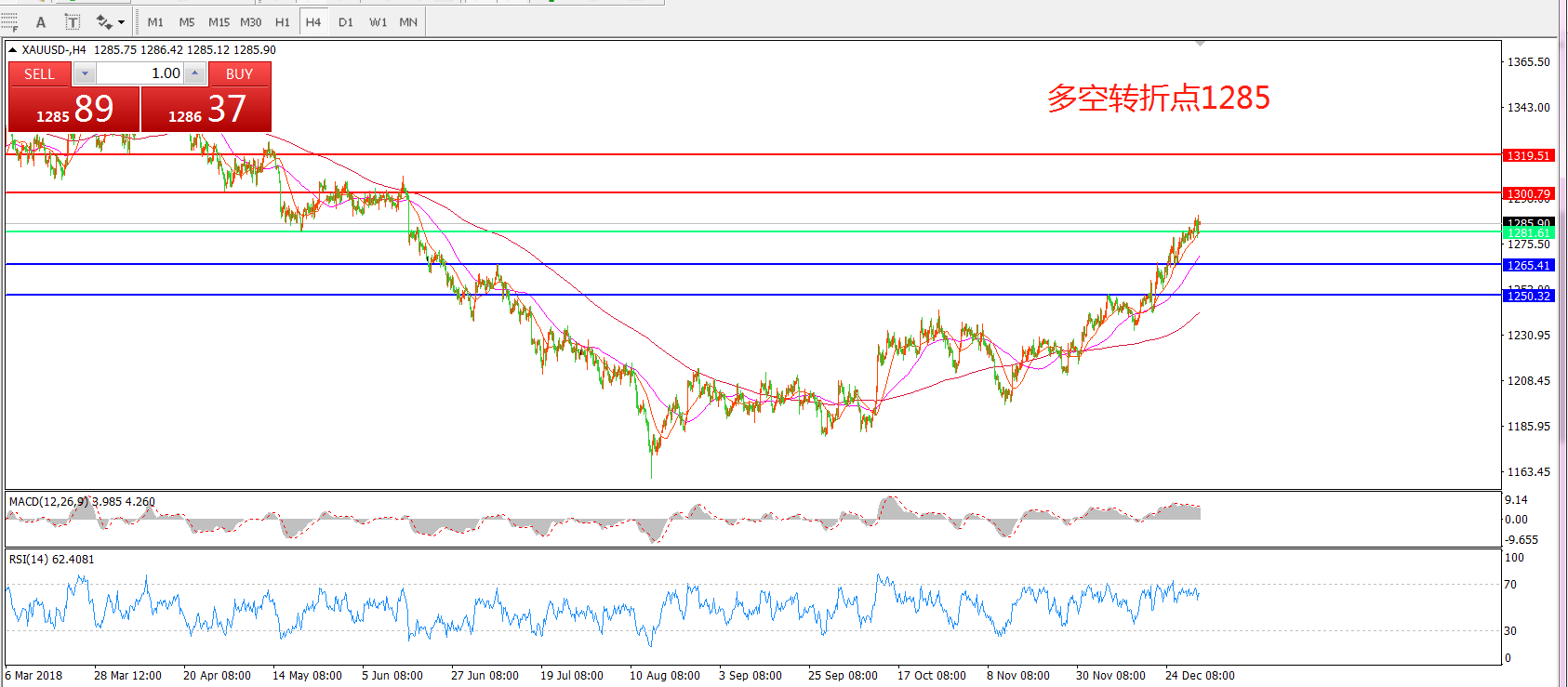多空转折点:1285.00