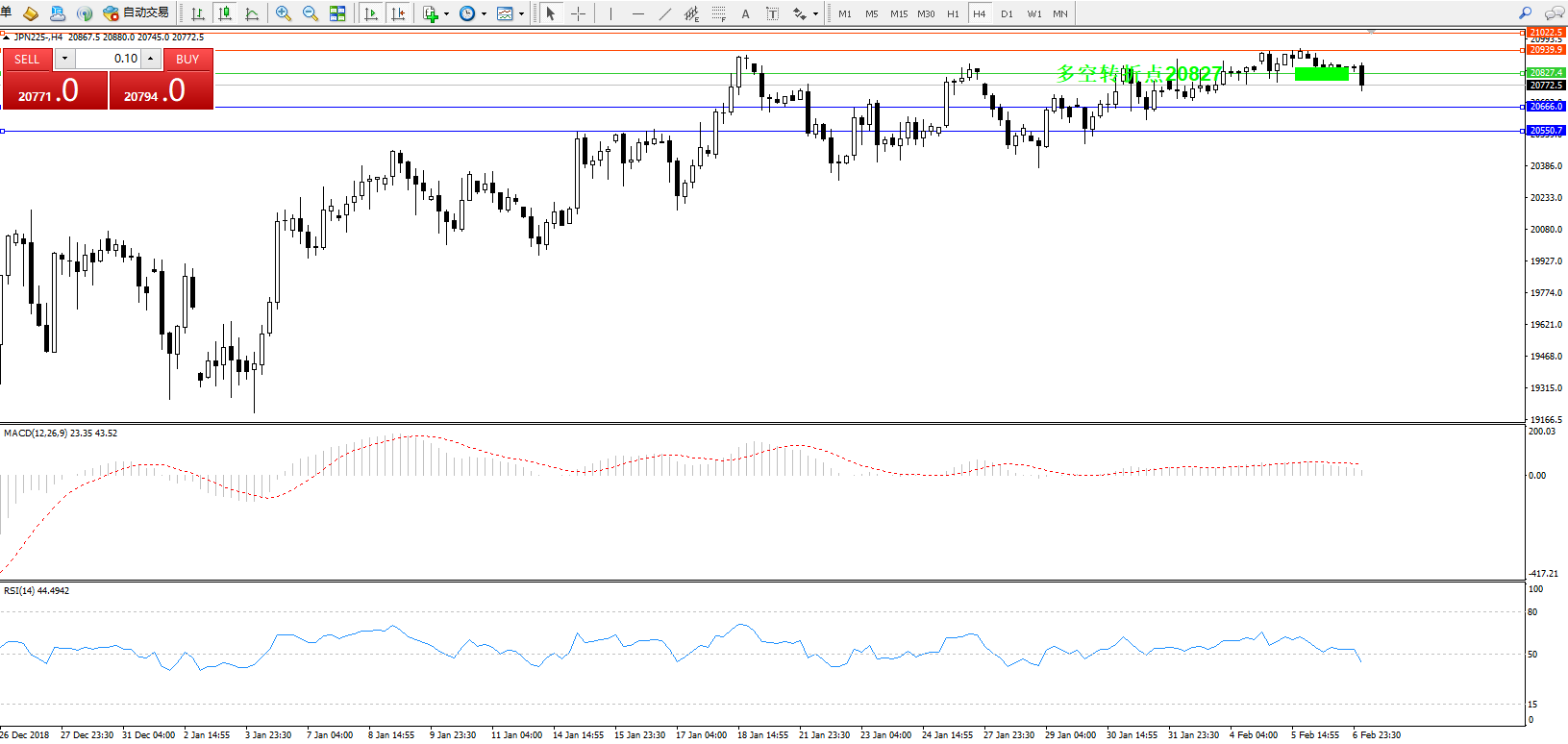 日经指数JPN225——4小时K线图: