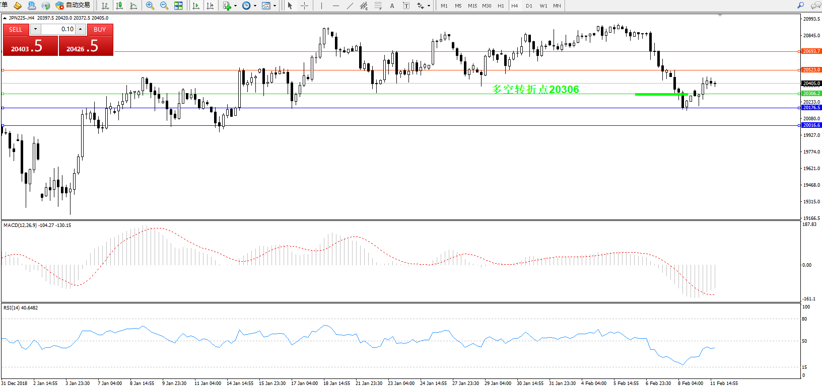 日经指数JPN225——4小时K线图: