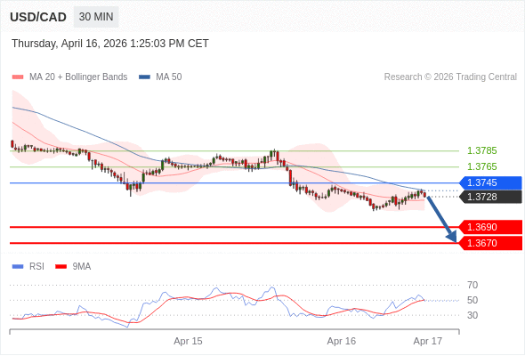 在 1.3745 之下,看跌,目标价位为 1.3690 ,然后为 1.3670 。