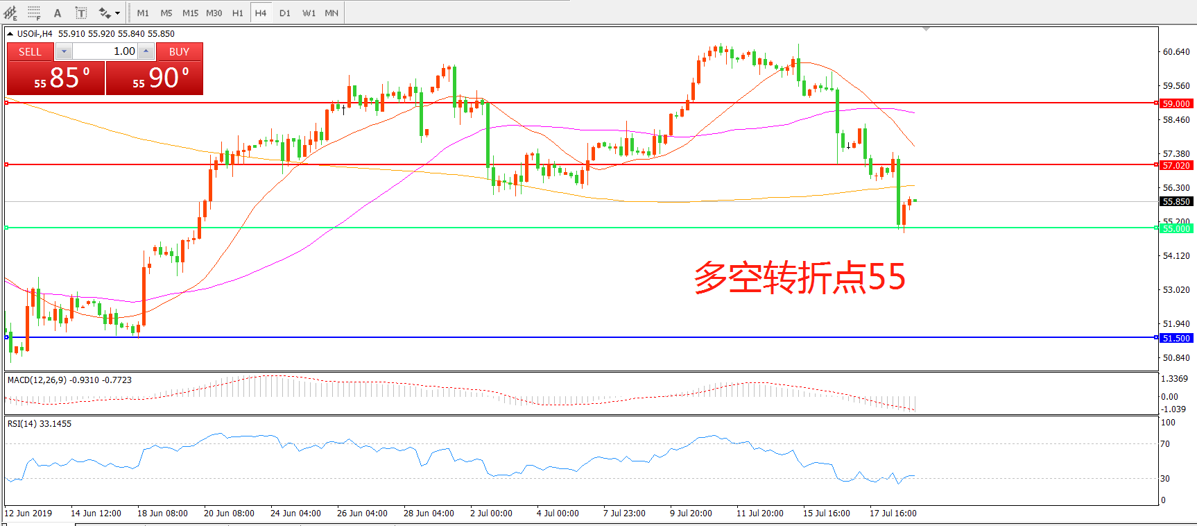 多空转折点:55.00