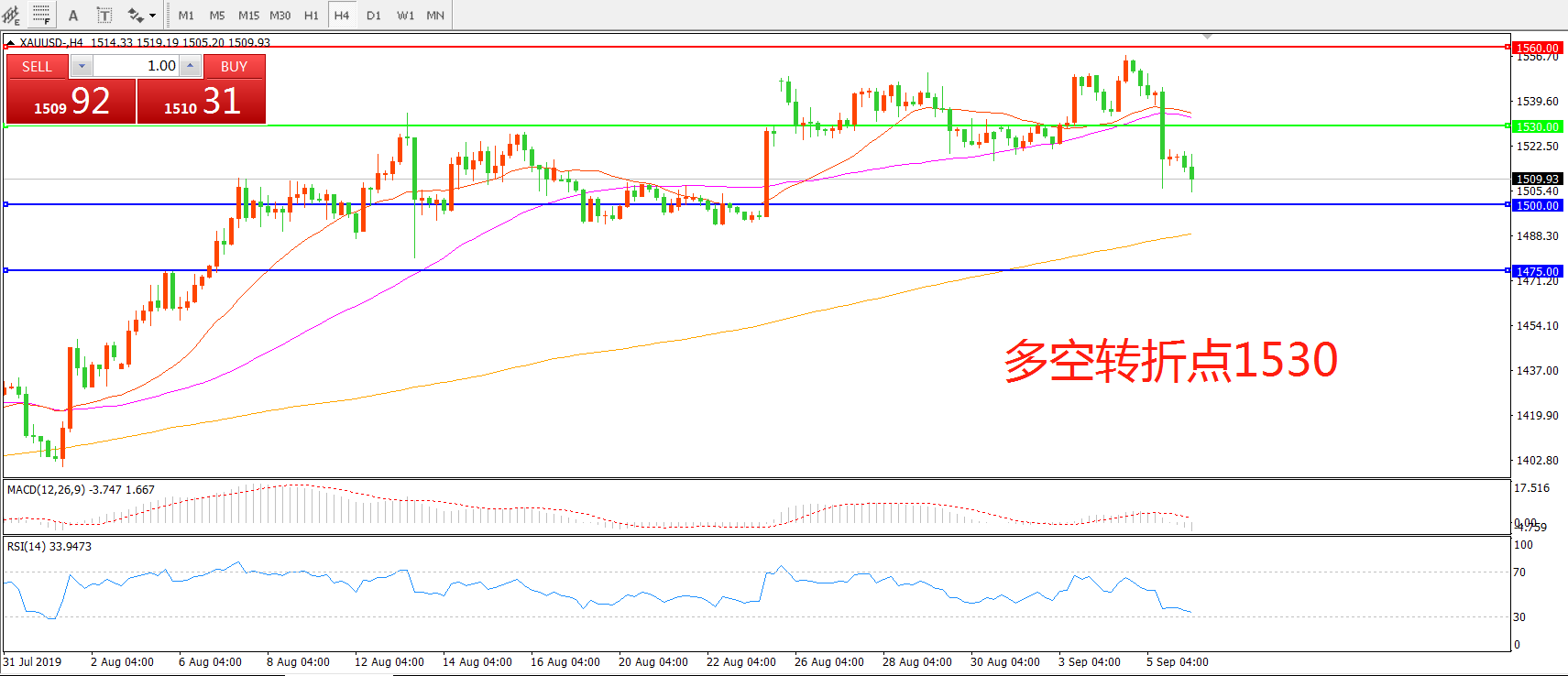 多空转折点:1530.00