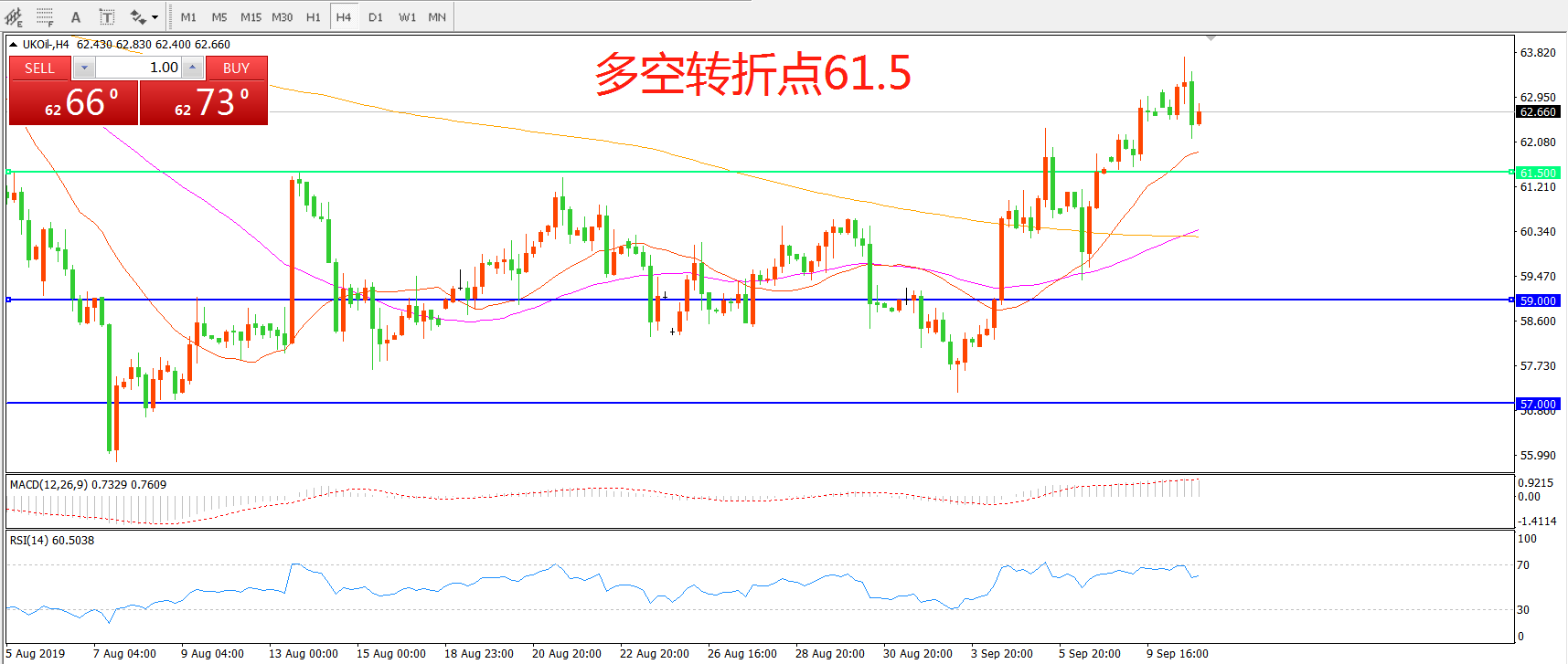 交易策略:在61.50之上看涨,目标64.00   66.70