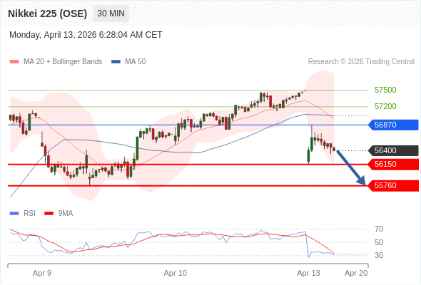 在 56870 之下,看跌,目标价位为 56150 ,然后为 55760 。