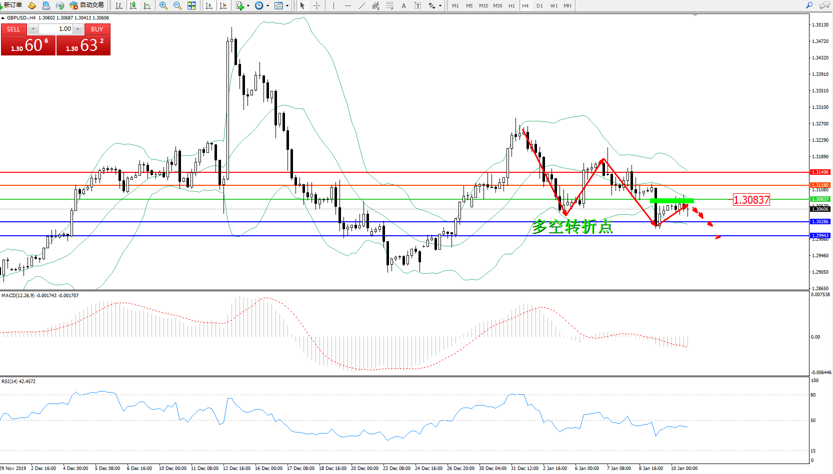 备选策略:1.30837上方看涨,目标1.31180、1.31498