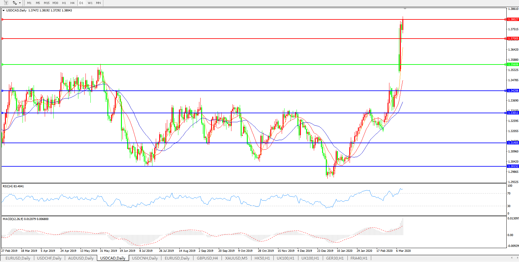 美元兑加元USDCAD    日线图: