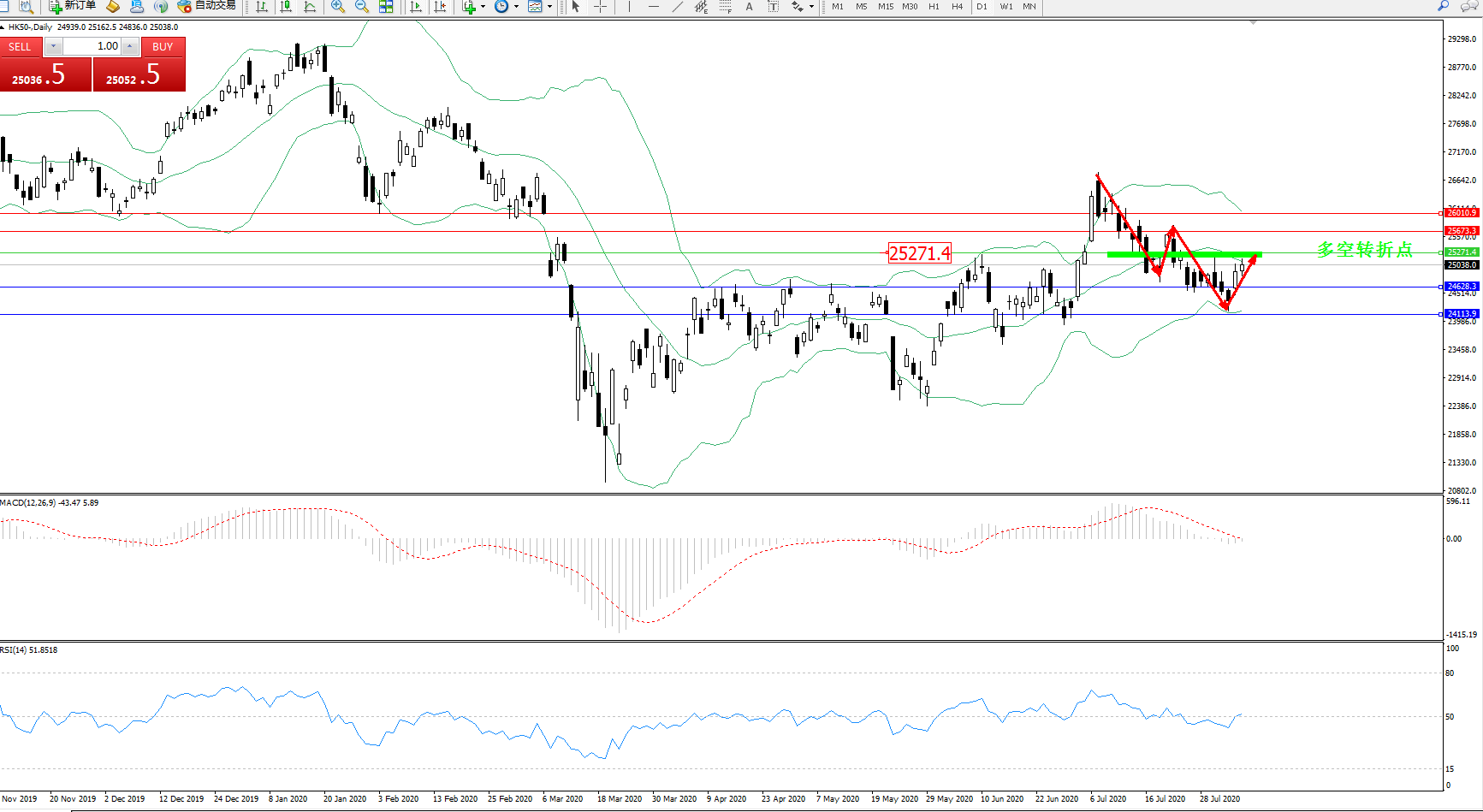 恒指HK50 ——日K线图显示: