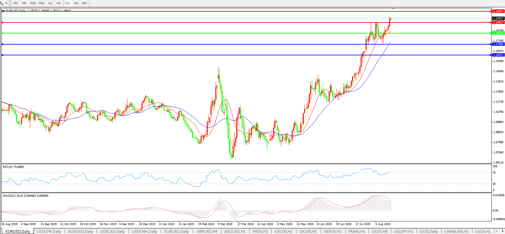欧元兑美元EURUSD 日线图: