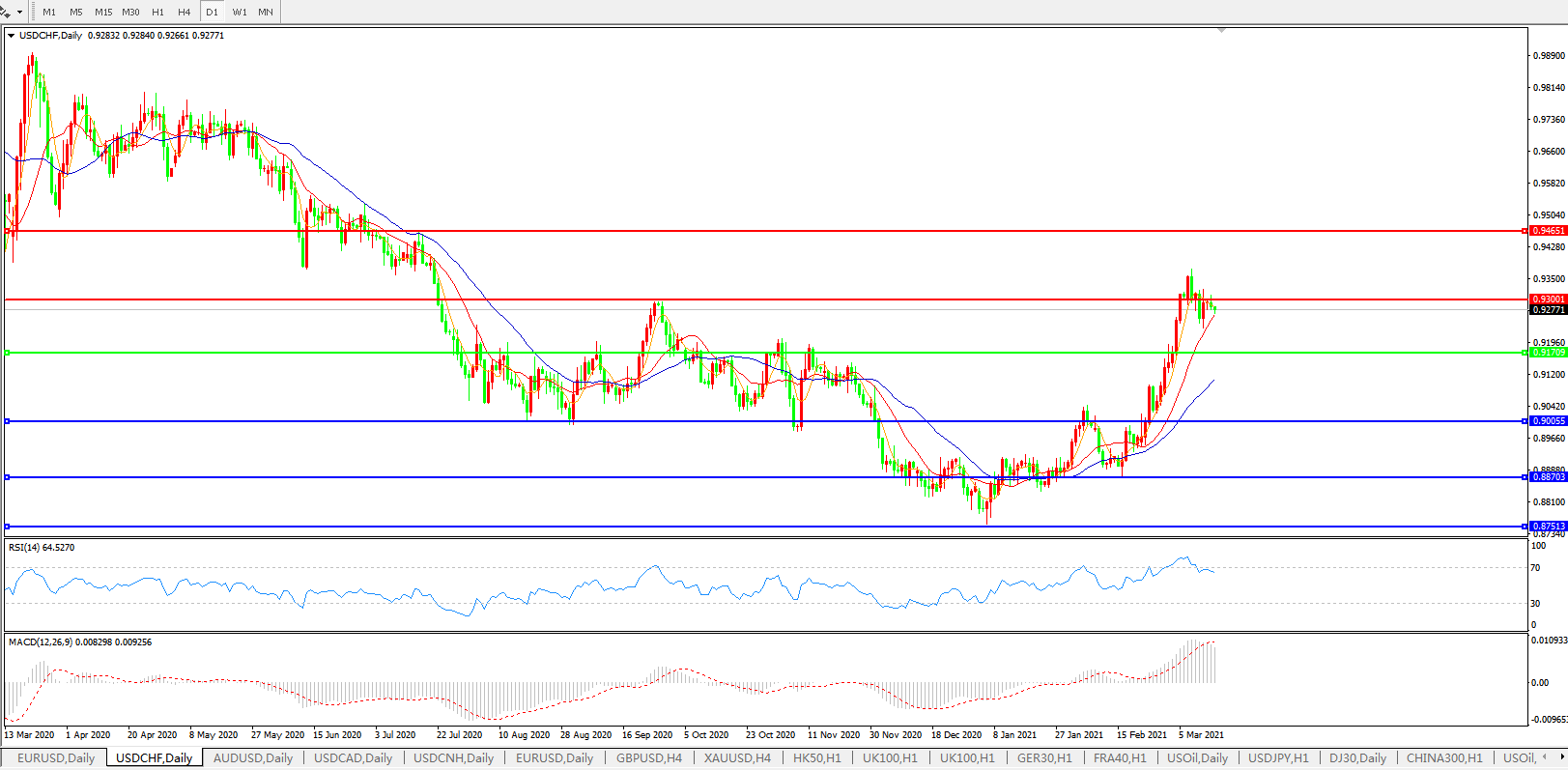 交易策略:0.9170上方看涨,目标0.9300、0.9465