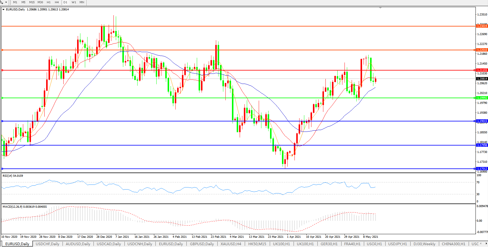 备选策略:1.2000下方看跌,目标1.1900、1.1800