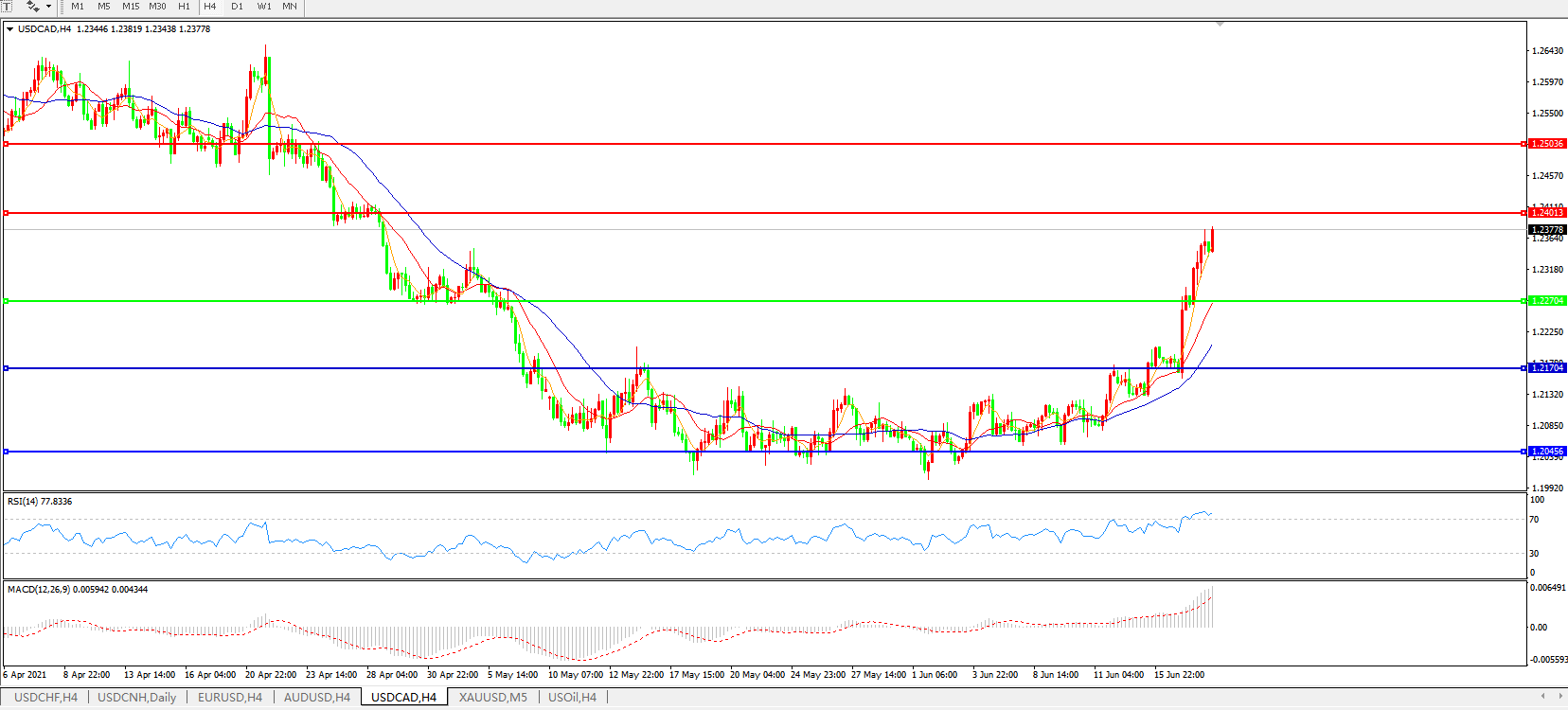 美元兑加元USDCAD    4小时图: