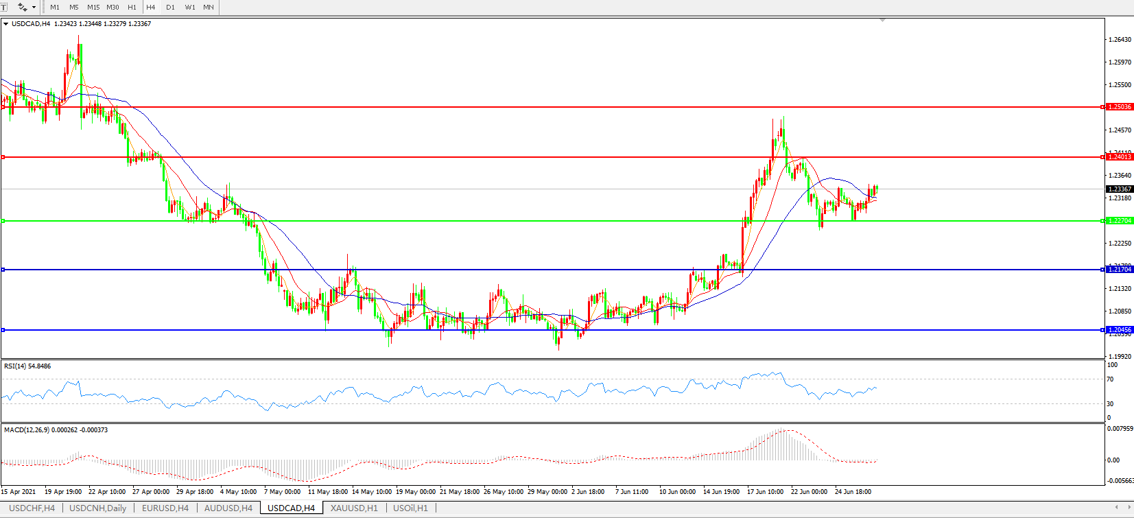 美元兑加元USDCAD    4小时图: