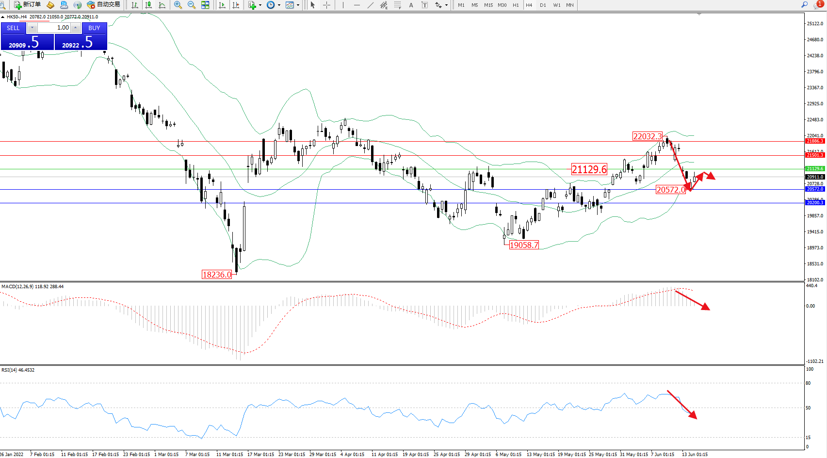 香港恒生指数6月14日(周二)收盘上涨0.41点,涨幅0.0%,报21067.99点;港股低开高走,午后三大指数全线翻红,市场情绪回暖明显。恒生科技指数跌0.06%,大型科技股部分转涨,美团涨超3%,一度跌近2%,大型金融股上涨带动大市盘中飘红,中资券商股拉升最为明显。市场忧虑美联储本周将加息75个基点,美联储掉期显示6月加息75个基点的概率升至76.6%。