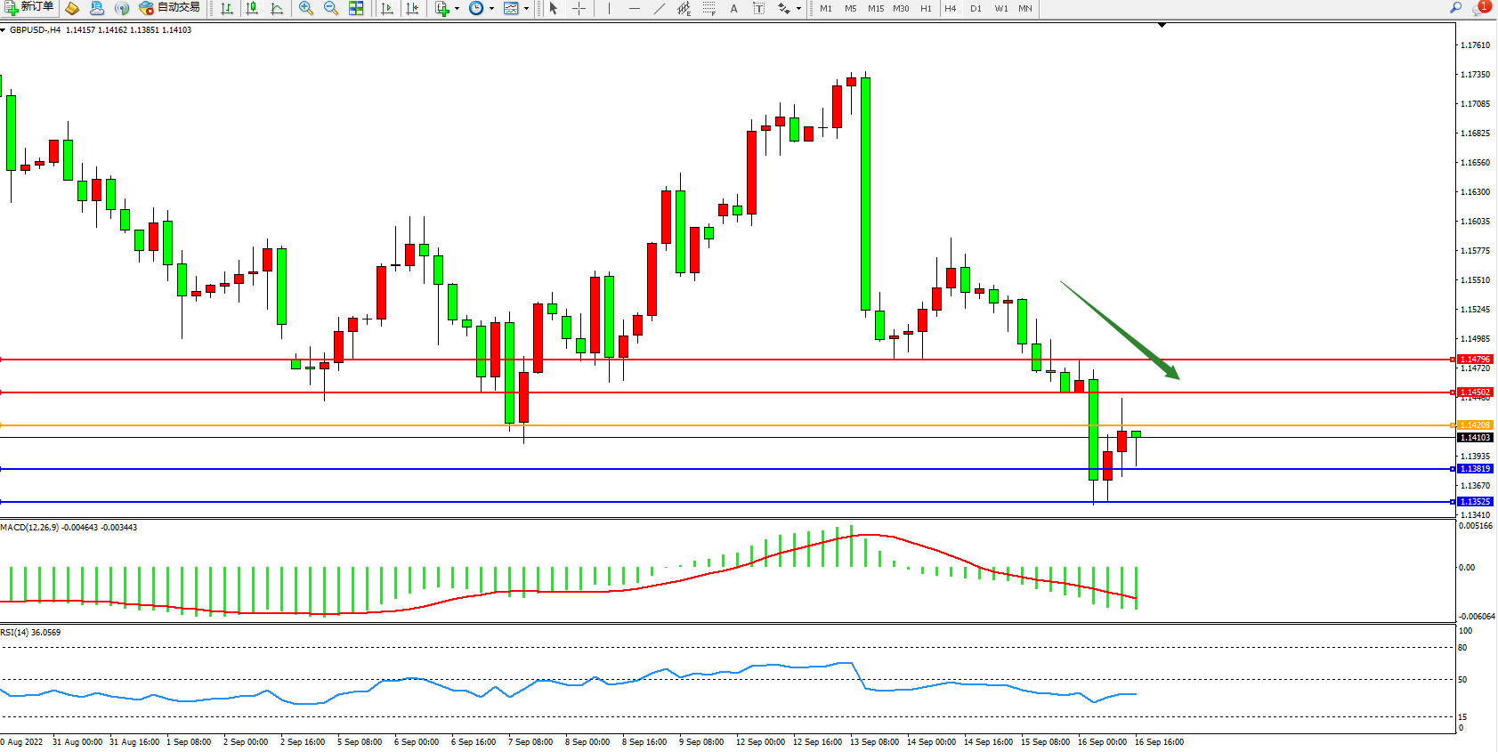 英镑美元GBPUSD ——4小时K线图显示: