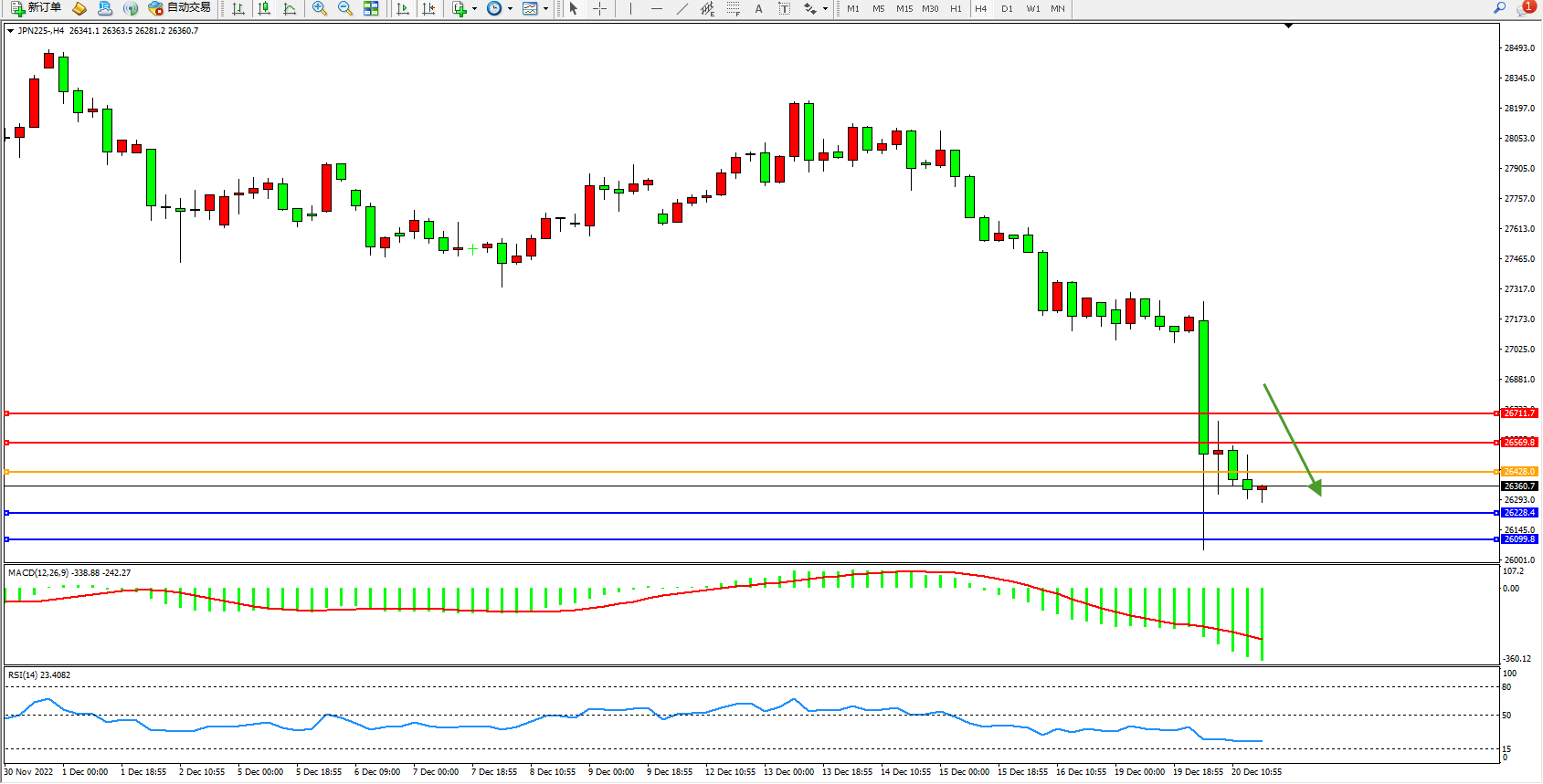 日经指数JPN225——4小时K线图显示: