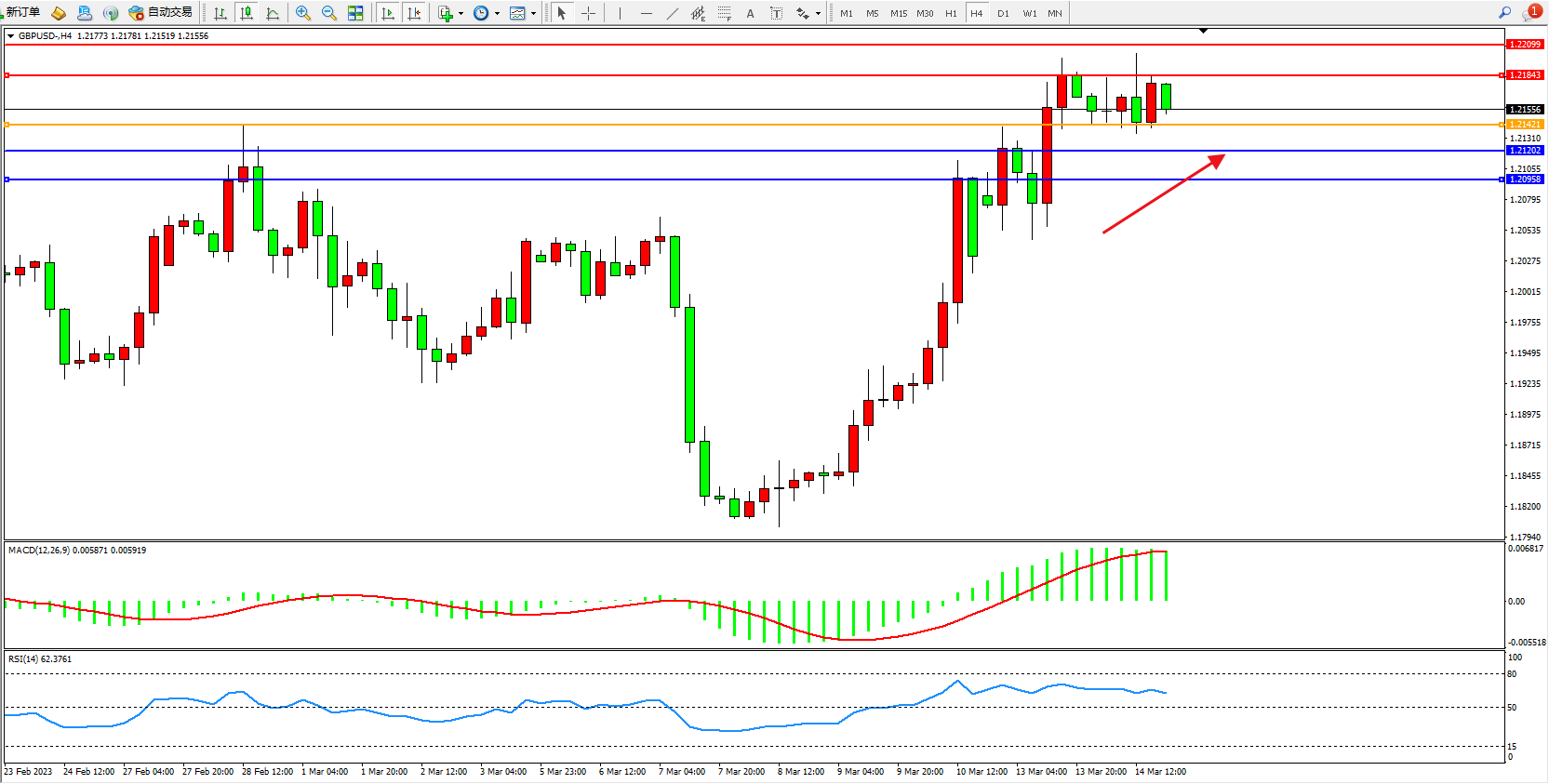 英镑美元GBPUSD ——4小时K线图显示: